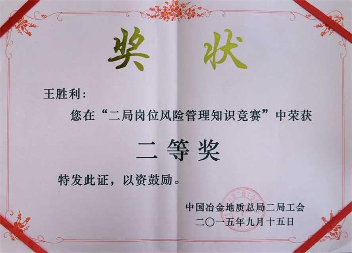 近日, 二局岗位风险管理知识竞赛结果揭晓,院/公司工会选送的来自泉州井桩分公司的王胜利荣获二等奖。备赛中,在工作上人称“坦克”的王胜利再一次展现了自己踏实勤恳、刻苦钻研的精神,利用一切业余时间积极准备,并最终取得好成绩。王胜利将代表二局参加总局岗位风险管理技能竞赛。